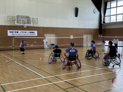 競技用車いすを使い、シャトルを打ち合うスピード感あふれる体験。