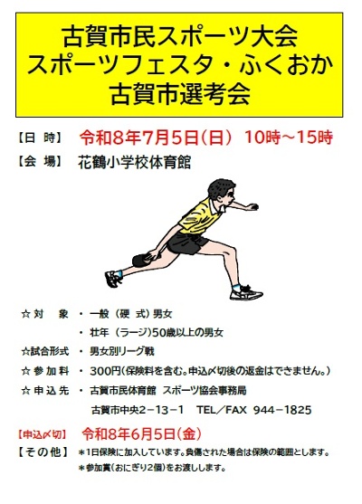 | 募集名 | 古賀市民スポーツ大会スポーツフェスタ・ふくおか古賀市選考会 |