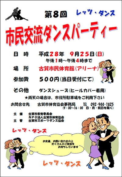 下記の通り、第8回市民交流ダンスパーティを開催します。