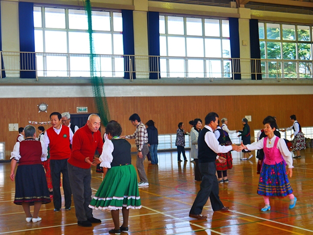 冬にしては暖かく天候に恵まれた、平成28年12月18日 日曜日にフォークダンス地域交流会を開催し、たくさんの方々に集まっていただきました。